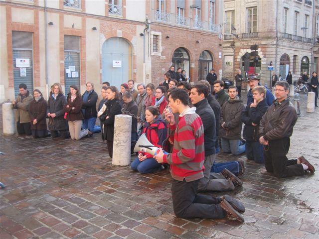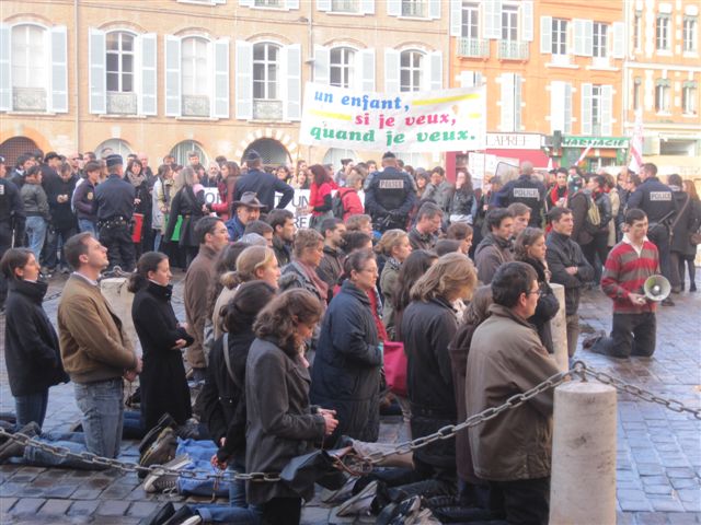Une quarantaire de personnes, presque exclusivement des jeunes, ont prié le rosaire devant la cathédrale Saint Etienne de Toulouse à l'appel de l'association SOS Tout-Petits, malgré les cris, les injures et les blasphèmes incessants de plus de 200 opposants très agressifs. Les forces de police nous ont forcé à terminer la manifestation avant la fin du rosaire, nous menaçant de ne plus assurer notre sécurité.