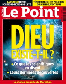 Coincé entre le "spécial sexualité" de juillet et le "spécial immobilier ville par ville, arrondissement par arrondissement" de septembre (je caricature à peine), le numéro du 5 août de l'hebdomadaire Le Point pose la question "Dieu existe-t-il ?". Et prétend y répondre en moins de 16 pages avec, entre autres, un article au titre pour le moins tendancieux : "L'OPA du Vatican sur la science". Je ne sais pas pour vous mais j'imagine mal dans Le Point le titre "L'OPA des juifs sur la science"...