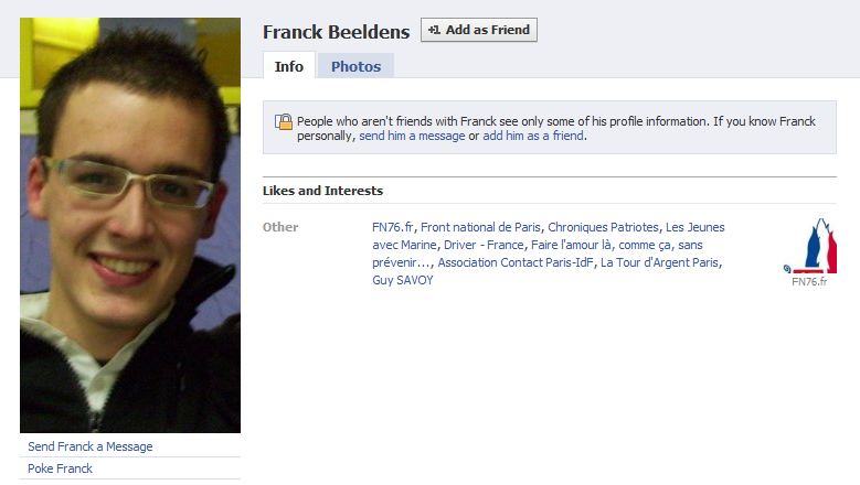 Sur Facebook, l'homme est membre des groupes "Faire l'amour là, comme ça, sans prévenir" et "Association Contact Paris-Idf" (une association homosexuelle militante) :
